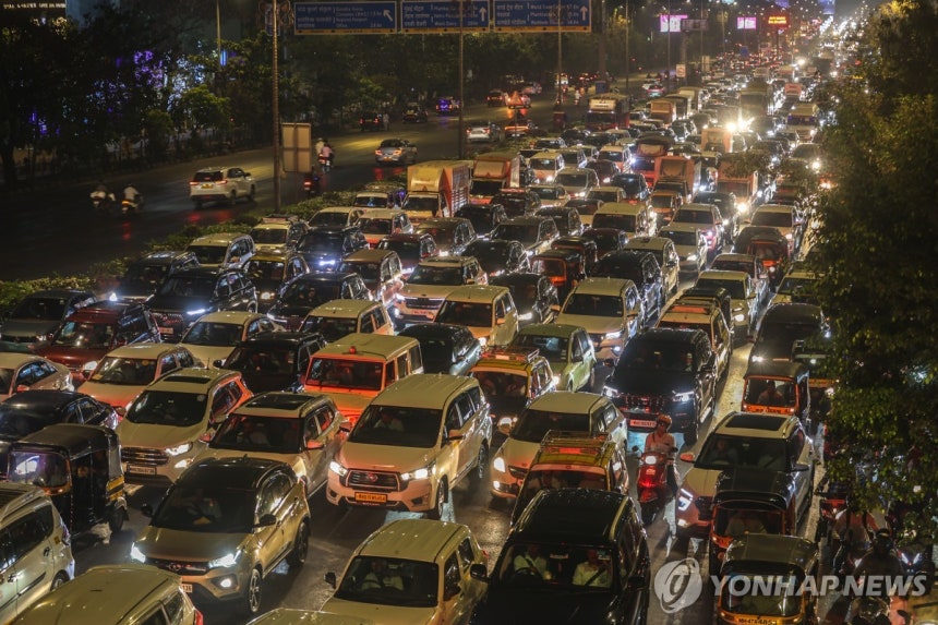 인도 뭄바이 자동차 행렬[EPA=