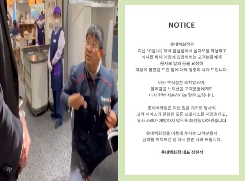 이 사과문은 정현석 롯데백화점 대표 명의로 작성되었으며, “이는 부적절한 조치였으며 불쾌감을 느끼셨을 고객분들께 다시 한번 죄송하다”고 말했다.