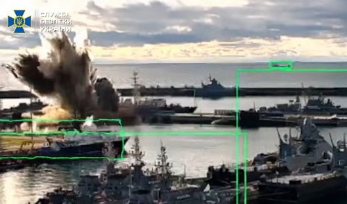 SBU가 러시아 잠수함을 타격했다며 올린 영상 [SBU 영상 캡처= 제공]