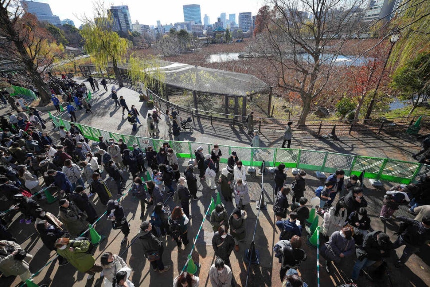 도쿄 우에노동물원에서 자이언트 판다 샤오샤오와 레이레이를 보기 위해 관람객들이 몰려 인파 혼잡을 초래했다. 관람 제한 조치가 시행되며 일일 선착순 4800명만이 관람할 수 있고, 1인당 관람 시간은 1분 내외다. 도쿄도청은 12월23일부터 내년 1월25일까지 쌍둥이 판다를 관람할 수 있다고 발표했다. 예약은 23일부터 시작되며, 1월12일까지는 선착순으로 운영되며 이후에는 추첨제로 진행된다. 관람객이 밀려오면서 오후 1시께 추가 접수가 불가능해졌고, 관람 1인당 판다와 만남 시간은 단 1분으로 제한되었다. 우에노동물원 앞은 개장 전부터 북새통이 되었고, 동물원 사이트는 몰려드는 예약으로 마비됐다. 쌍둥이 판다를 보기 위해 몇 시간을 기다렸다고 밝힌 50대 팬은 “샤오사오가 느긋하게 쉬는 모습이 귀엽다”면서 “더 이상 일본에서 판다를 볼 수 없다는 점이 정말 아쉽고 쓸쓸하다”고 했다. 사육장부는 쌍둥이 판다 샤오샤오와 레이레이의 탄생을 동물원에 큰 영향을 주었다. 일본에 남은 판다는 샤오샤오와 레이레이 두 마리뿐이며, 이번 반환으로 1972년 이후 54년 만에 ‘판다 없는 일본’이 된다. 우에노동물원은 일반 공개 마지막 일정을 내년 1월25일로 정했다. 30분당 최대 400명까지만 입장할 수 있다. 관람은 23일부터 인터넷 사전 예약을 통해만 가능하다.