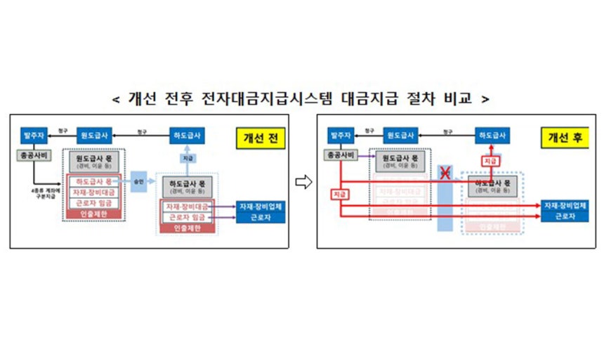 내년 3월부터 건설공사 하도급 임금 지급 빨라진다 국토교통부는 내년 3월 30일부터 건설공사 하도급 노동자에게 대금 지급이 빨라진다. 국토교통부는 19일부터 내년 1월 28일까지 전자대금지급시스템의 기능을 개선하는 내용을 담은 건설산업기본법 시행규칙 개정안을 입법예고한다. 개정안은 원수급인의 하도급 대금 지급 승인 절차를 삭제한다. 발주자가 지급한 공사대금 중 노동자 임금과 자재장비비는 하수급인 건설사를 거치지 않고 개별 노동자 및 자재장비업자에게 직접 지급하도록 한다. 조달청은 99%의 공공 발주 건설 공사에 사용 중인 ‘하도급 지킴이’ 시스템 개선을 추진한다. 이에 따라 내년 3월 30일부터 개정된 규정에 따라 공사 대금이 지급된다. 개정안은 현행 건산법 시행규칙에서 원수급인이 하도급 대금을 적절하게 청구했는지 확인하고 대금을 지급해야 한다는 절차를 삭제한다. 국토부는 이 절차가 불필요하며 원수급인이 검토를 이유로 지급 승인을 지연하는 사례가 발생한다고 설명한다.nn국토교통부는 이번 개정으로 대금지급 승인 지연 사례가 줄고, 임금 및 자재장비비 체불 문제도 차단될 것으로 기대하고 있다. 조달청은 하도급 지킴이 시스템을 개선해 공공 발주 건설 공사에 적용할 계획이다. 개정안은 발주자가 원수급인에게 지급한 공사 대금 중 근로자 임금과 자재장비비를 하수급인 건설사를 거치지 않고 개별 근로자 및 자재 장비업자에게 직접 지급하도록 한다. 건설현장에 4개국어로 안전 경고문이 부착돼 있다.nn국토교통부는 19일부터 내년 1월 28일까지 건설산업기본법 시행규칙 개정안을 입법예고한다. 개정안은 발주자가 지급한 공사대금이 원수급인을 거쳐 하수급인, 자재장비업자, 근로자에게 지급되는 과정에서 원수급인의 하도급 대금 지급 승인 절차를 삭제한다. 조달청은 99%의 공공 발주 건설 공사에 사용 중인 ‘하도급 지킴이’ 시스템 개선을 추진한다.nn국토부는 현행 건산법 시행규칙에서 원수급인이 하도급 대금을 적절하게 청구했는지 확인하고 대금을 지급해야 한다는 절차를 삭제한다. 이는 불필요한 절차이며, 원수급인이 해당 검토 절차를 이유로 하도급 대금 지급 승인을 지연하는 사례만 발생한다고 설명한다.nn국토교통부는 이번 개정으로 대금지급 승인 지연 사례가 줄고, 임금 및 자재장비비 체불 문제도 차단될 것으로 기대하고 있다. 조달청은 99%의 공공 발주 건설 공사에 사용 중인 ‘하도급 지킴이’ 시스템 개선을 추진한다. 개정안은 발주자가 원수급인에게 지급한 공사 대금 중 근로자 임금과 자재장비비를 하수급인 건설사를 거치지 않고 개별 근로자 및 자재 장비업자에게 직접 지급하도록 한다.nn국토교통부는 19일부터 내년 1월 28일까지 전자대금지급시스템의 기능을 개선하는 내용을 담은 건설산업기본법 시행규칙 개정안을 입법예고한다. 개정안은 발주자가 지급한 공사대금이 원수급인을 거쳐 하수급인, 자재장비업자, 근로자에게 지급되는 과정에서 원수급인의 하도급 대금 지급 승인 절차를 삭제한다. 조달청은 99%의 공공 발주 건설 공사에 사용 중인 ‘하도급 지킴이’ 시스템 개선을 추진한다.nn국토부는 현행 건산법 시행규칙에서 원수급인이 하도급 대금을 적절하게 청구했는지 확인하고 대금을 지급해야 한다는 절차를 삭제한다. 이는 불필요한 절차이며, 원수급인이 해당 검토 절차를 이유로 하도급 대금 지급 승인을 지연하는 사례만 발생한다고 설명한다.nn국토교통부는 이번 개정으로 대금지급 승인 지연 사례가 줄고, 임금 및 자재장비비 체불 문제도 차단될 것으로 기대하고 있다. 조달청은 99%의 공공 발주 건설 공사에 사용 중인 ‘하도급 지킴이’ 시스템 개선을 추진한다. 개정안은 발주자가 원수급인에게 지급한 공사 대금 중 근로자 임금과 자재장비비를 하수급인 건설사를 거치지 않고 개별 근로자 및 자재 장비업자에게 직접 지급하도록 한다.nn국토교통부는 19일부터 내년 1월 28일까지 전자대금지급시스템의 기능을 개선하는 내용을 담은 건설산업기본법 시행규칙 개정안을 입법예고한다. 개정안은 발주자가 지급한 공사대금이 원수급인을 거쳐 하수급인, 자재장비업자, 근로자에게 지급되는 과정에서 원수급인의 하도급 대금 지급 승인 절차를 삭제한다. 조달청은 99%의 공공 발주 건설 공사에 사용 중인 ‘하도급 지킴이’ 시스템 개선을 추진한다.nn국토부는 현행 건산법 시행규칙에서 원수급인이 하도급 대금을 적절하게 청구했는지 확인하고 대금을 지급해야 한다는 절차를 삭제한다. 이는 불필요한 절차이며, 원수급인이 해당 검토 절차를 이유로 하도급 대금 지급 승인을 지연하는 사례만 발생한다고 설명한다.nn국토교통부는 이번 개정으로 대금지급 승인 지연 사례가 줄고, 임금 및 자재장비비 체불 문제도 차단될 것으로 기대하고 있다. 조달청은 99%의 공공 발주 건설 공사에 사용 중인 ‘하도급 지킴이’ 시스템 개선을 추진한다. 개정안은 발주자가 원수급인에게 지급한 공사 대금 중 근로자 임금과 자재장비비를 하수급인 건설사를 거치지 않고 개별 근로자 및 자재 장비업자에게 직접 지급하도록 한다.