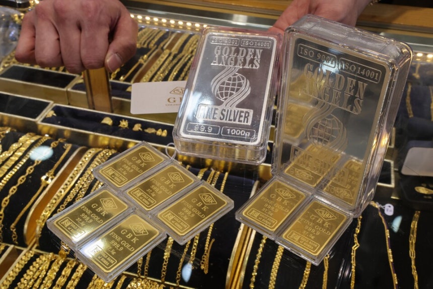 금과 은 등 귀금속 가격이 사상 최고치를 경신한 가운데 지난 25일 서울 종로구 정인보석에 골드바와 실버바가 놓여있다. ⓒ