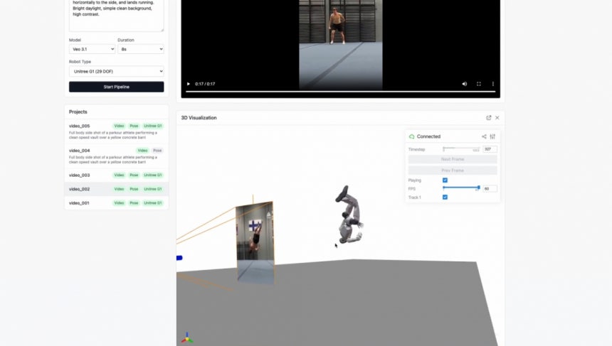 에임인텔리전스는 26일 로봇 학습용 모션데이터 수집·변환 엔진 ‘비디오투로봇’을 공개했다. 이는 LG전자와 미국 로봇 운영체제 기업 오픈마인드와 추진 중인 ‘피지컬 AI 세이프티’ 공동 연구의 첫 성과다. 비디오투로봇은 영상 속 인간의 동작을 로봇 학습 데이터로 변환하는 엔진으로, 인간과 근접 상호작용, 급경사 미끄러짐, 고하중 물체 조작 시의 균형 붕괴 등 현실에서 직접 연출하기 어려운 시나리오를 생성형 AI를 활용해 안전하게 변환한다. 이를 통해 로봇 안전 문제를 사후 대응이 아닌 사전 학습의 영역으로 끌어올렸다. 실제 환경에서 반복 촬영이 불가능한 낙상·충돌 등 위험 상황의 데이터를 직접 찍지 않고도 얻을 수 있다. 비디오투로봇은 공개되자마자 X와 링크드인 합산 조회수 20만회를 넘어섰으며, 깃허브 스타 수도 400개를 돌파했다. 비디오투로봇은 단순한 도구가 아닌 피지컬 AI 세이프티를 향한 첫걸음