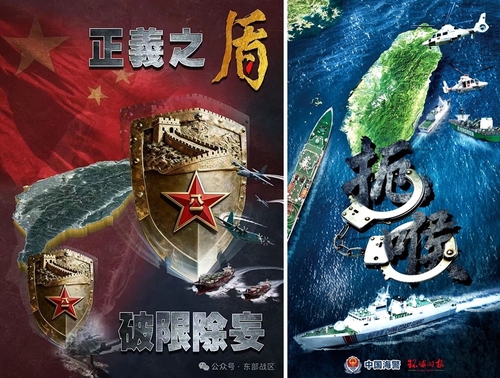 중국이 공개한 대만 포위훈련 관련 포스터 [중국 관영매체 환구시보 캡처 제공)]