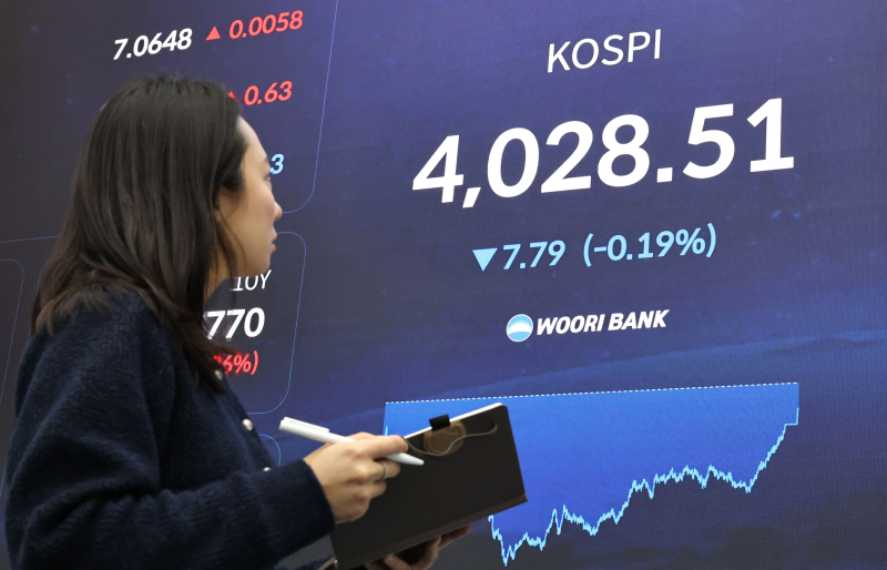 서울 중구 우리은행 본점 딜링룸 현황판에 코스피 지수 등이 표시되고 있다. [사진